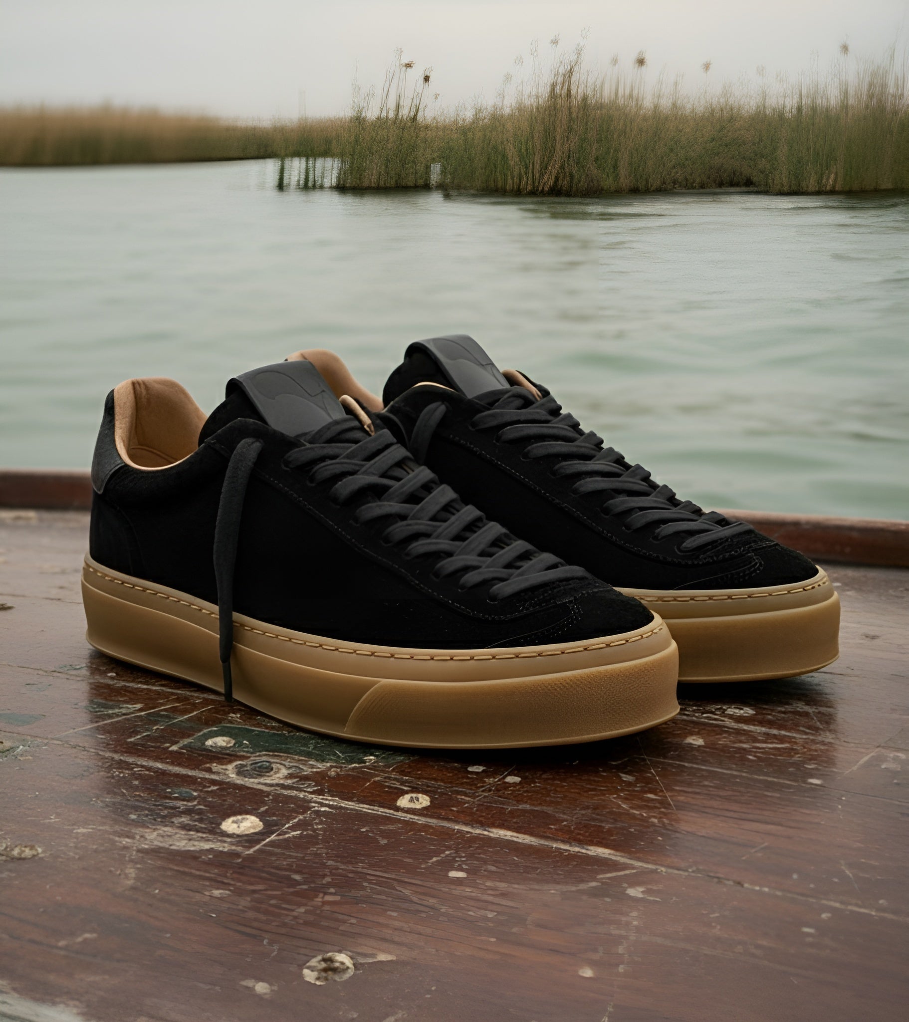 From Venice, Acqua Alta creates the Lagoon Collection with a shared love for craft and movement. Born where ancient stones meet eternal tides, these sneakers move between tradition and innovation, between the floating city and urban streets, between heritage and the future. Premium suede shifts effortlessly between worlds: artisanal yet contemporary, Venetian-rooted yet globally minded, built for those who rise above.